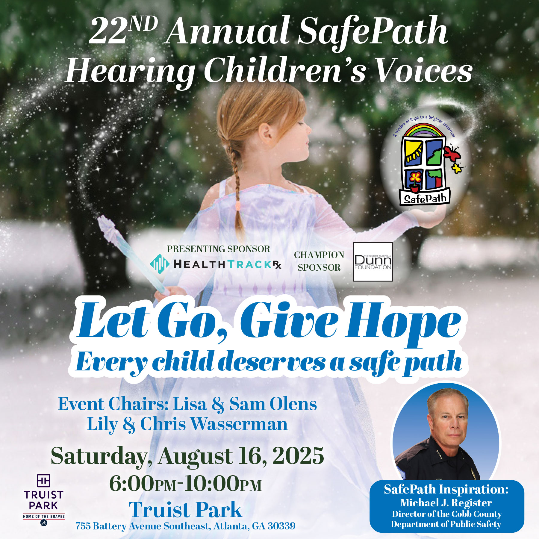« All Events This event has passed. Hearing Children’s Voices 2025 August 16, 2025 @ 6:00 pm - 10:00 pm « SafePath’s Community Holiday Open House 2026 Atkins Golf Classic benefitting SafePath » View the photos from 2024 here! Add to calendar Google Calendar iCalendar Outlook 365 Outlook Live Details Date: August 16, 2025 Time: 6:00 pm - 10:00 pm Event Category: SafePath Event Organizer SafePath Phone +1 770-801-3465 Email info@safepath.org View Organizer Website Venue Truist Park 755 Battery Ave SE Atlanta, GA 30339 United States + Google Map Add Comment Cancel replyYour email address will not be published. Required fields are marked * Save my name, email, and website in this browser for the next time I comment.